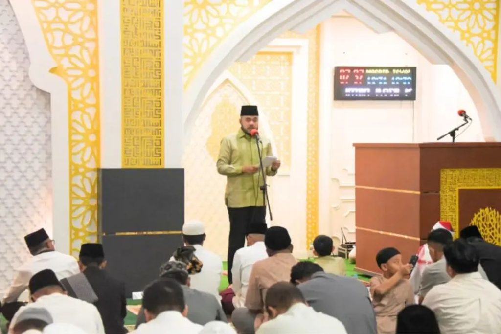 Padang, Galanggang.id – Wali Kota Padang, Fadly Amran, melaksanakan ibadah salat Idulfitri 1 Syawal 1447 Hijriah bersama ribuan masyarakat di Masjid Agung Nurul Iman, Sabtu (21/3/2026). Suasana ibadah berlangsung khidmat, menandai kemenangan setelah sebulan penuh menjalani ibadah di bulan suci Ramadan.