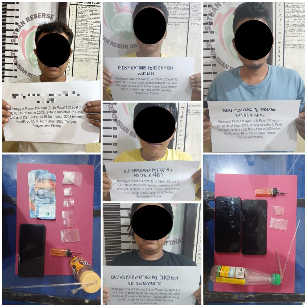 Dharmasraya, Galanggang.id — Tim LUPAK Satresnarkoba Polres Dharmasraya, Polda Sumatera Barat, menggerebek aktivitas pesta narkotika jenis sabu di Kecamatan Pulau Punjung dan mengamankan lima orang yang diduga terlibat, Sabtu (11/4/2026) sekitar pukul 01.00 WIB.