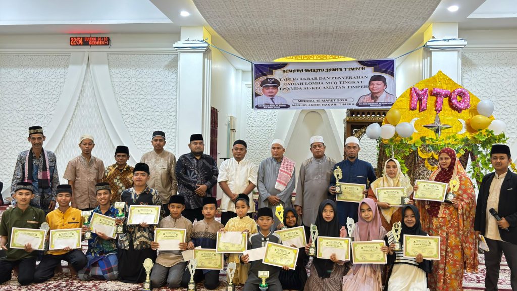 Dharmasraya, Galanggang.id – Semangat syiar Islam kembali membara di Nagari Timpeh. Remaja Masjid Jamik Nagari Timpeh sukses menyelenggarakan Musabaqah Tilawatil Qur’an (MTQ) tingkat se-Kecamatan Timpeh tahun 2026.