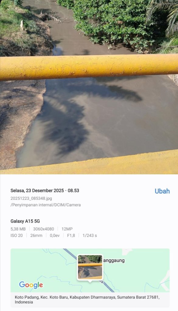 Meski sanksi telah dijatuhkan, pengawasan di lapangan harus terus ditingkatkan. Pasalnya, pada Selasa (23/12/2025), NLA warga setempat kembali melaporkan kondisi air sungai Koto Balai di dekat Rumah Makan Simpang Raya, Jalan Lintas Sumatera Nagari Koto Padang, Kecamatan Koto Baru, yang kembali menyaksikan warna air sungai berubah warna menjadi abu-abu pekat hingga menghitam.