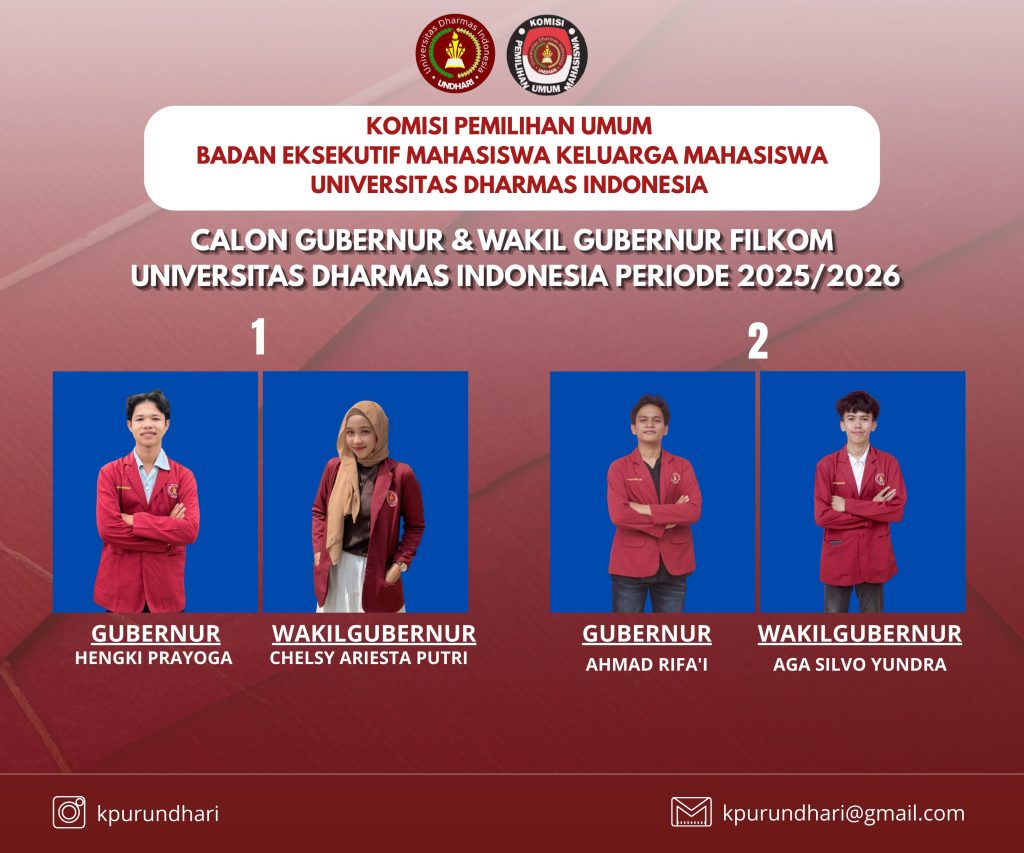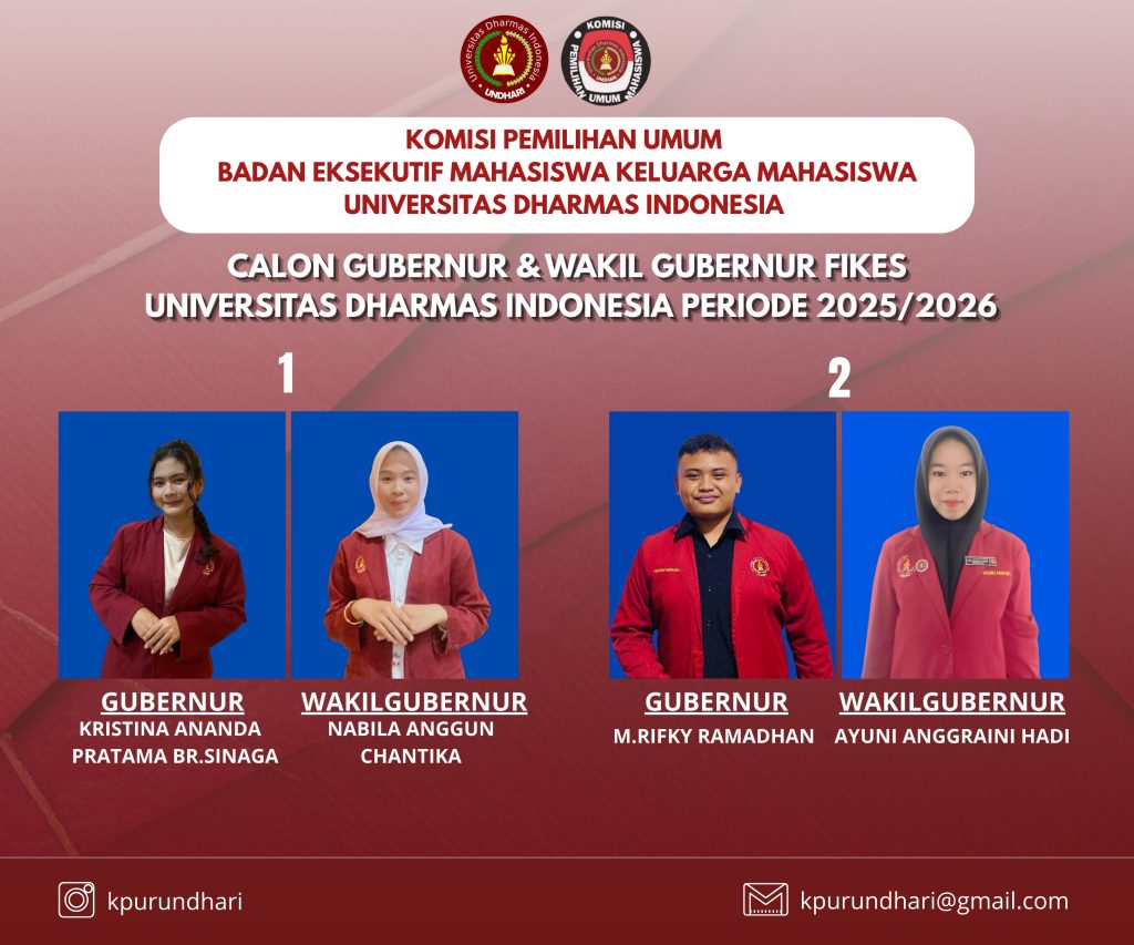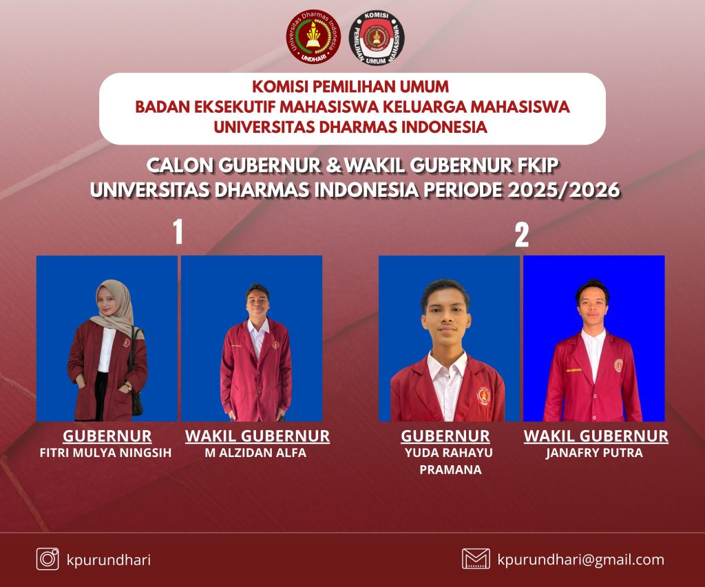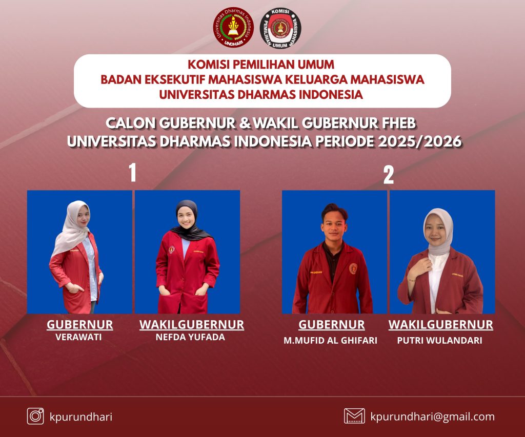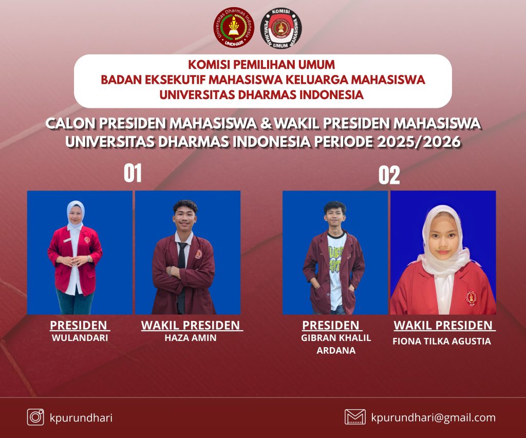 Berdasarkan hasil rekapitulasi suara, KPUR Undhari menetapkan pemenang Pemira Undhari Tahun 2025 sebagai berikut: