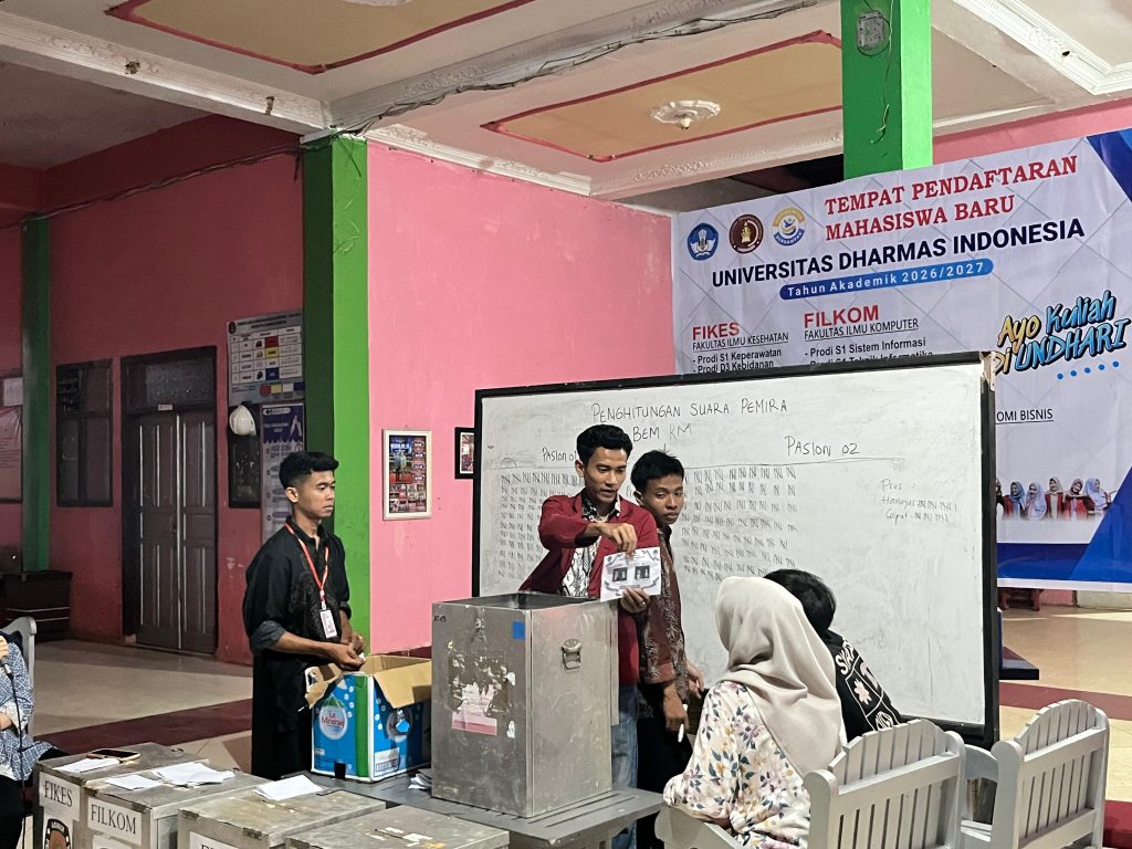 Dharmasraya, Galanggang — Pemilihan Raya Mahasiswa (Pemira) Universitas Dharmas Indonesia (Undhari) tahun 2025 berlangsung sukses dan lancar, Selasa (16/12/2025).